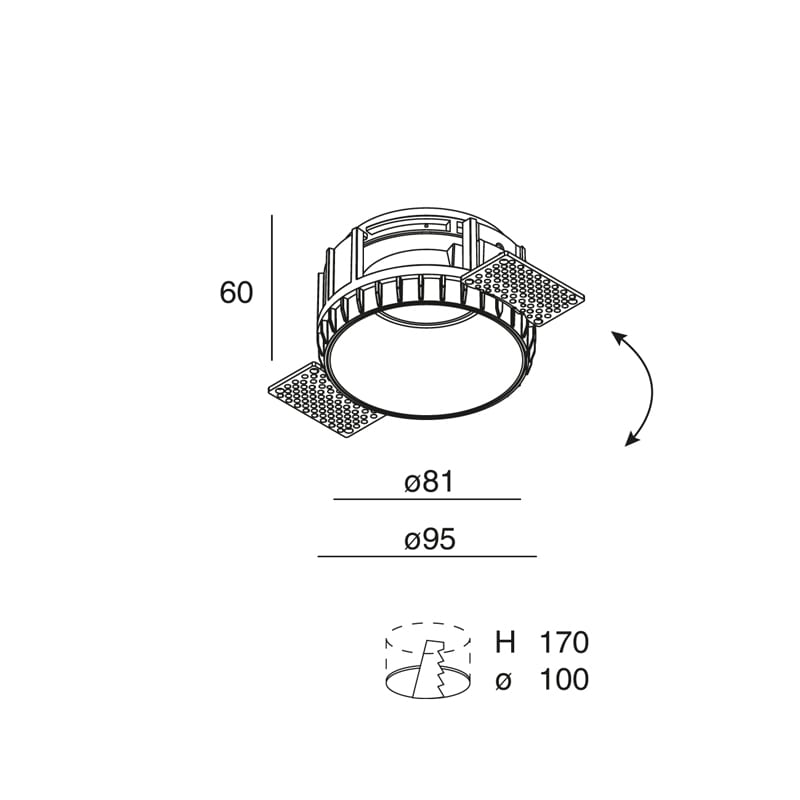 Diametro foro montaggio ad incasso: