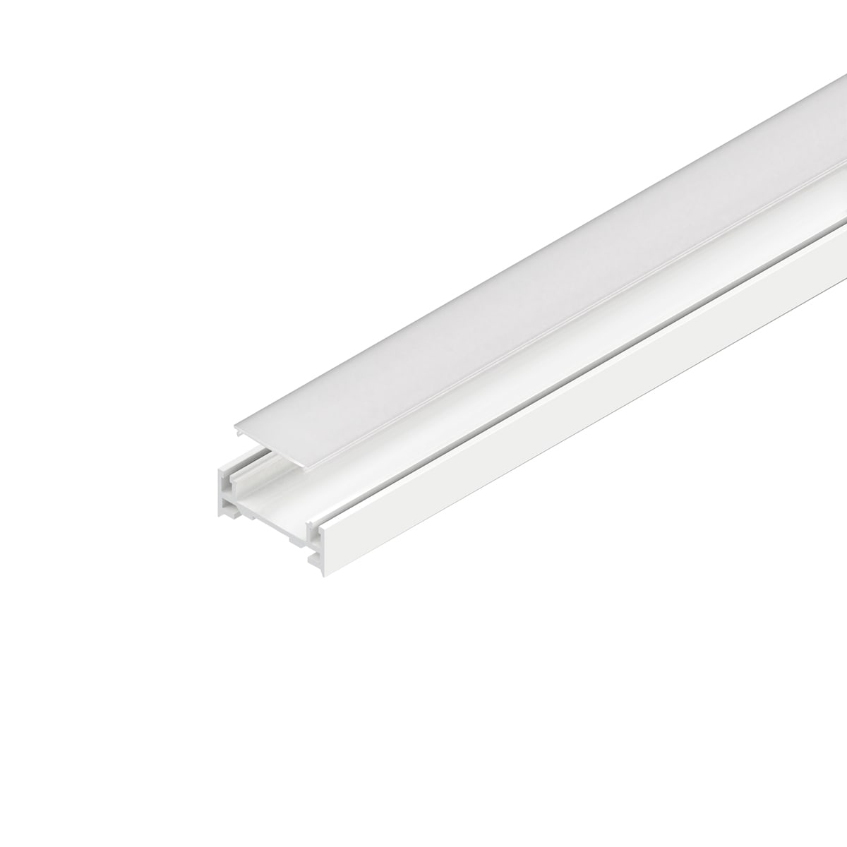 ALL-TRACK PROFILO UP-LIGHT Profilo dissipante per binario ALL-TRACK per alloggiamento di Strip LED per luce indiretta. Profilo in lega di alluminio verniciata bianca o nera, testate di chiusura in polimero termoplastico, schermo diffusore ad inserimento a scatto in PMMA pale. Schermo diffusore incluso, coppia di testate, cavi di sospensione, Strip LED e box con alimentatore 24Vdc da ordinare a parte.