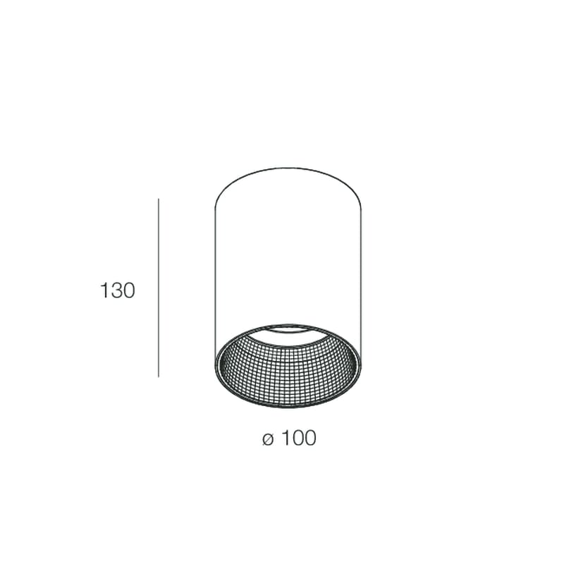 Apparecchio LED cilindrico, per installazione a plafone. Ottica fissa, con sorgente COB LED ad alta resa cromatica CRI >90, posizionata recessa per limitare l’abbagliamento. Corpo in lega di alluminio vernicata a polvere, riflettore in tecnopolimero con deposizione in alto vuoto di alluminio puro al 99,9% e lente ad alto rendimento in policarbonato. Alimentazione elettronica integrata.