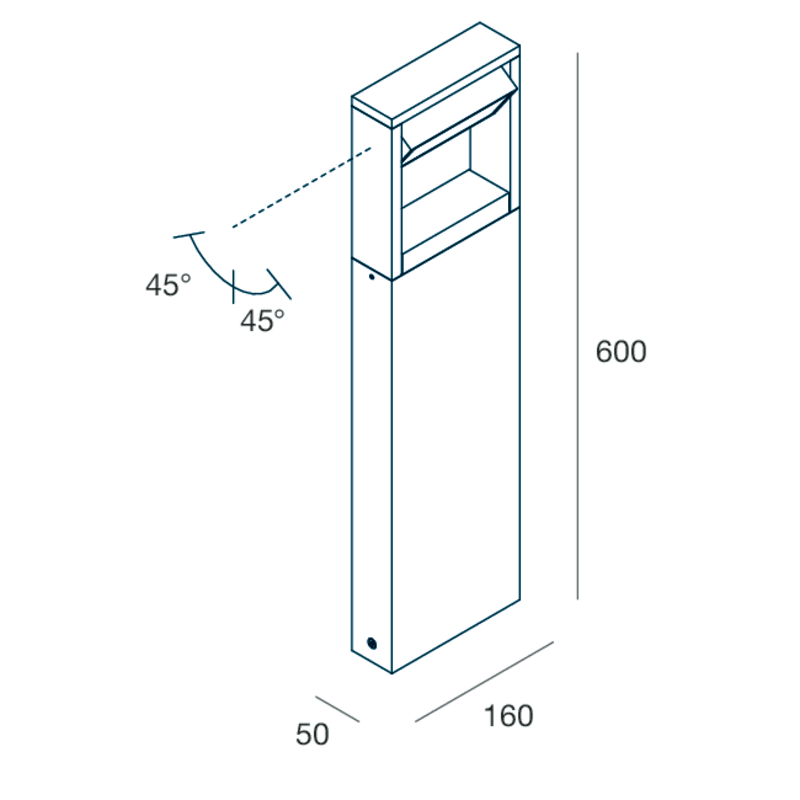 Bollard LED IP65 orientabile, per installazione su pavimentazione. Corpo in lega di alluminio. Sorgenti LED 3000K. Schermo in vetro extrachiaro trasparente di protezione. Verniciatura a polvere grigio antracite ad alta resistenza agli agenti atmosferici.Alimentazione elettronica 220-240V 50/60Hz integrata.