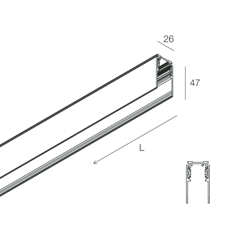 FORTY8 TRACK PLAFONE/SOSPENSIONE DEEP BINARIO ELETTRIFICATO LINEARE 48VTestate terminali, giunti lineari, alimentazione per binario e accessori per la sospensione da ordinare a parte. Installazione a plafone senza accessori.