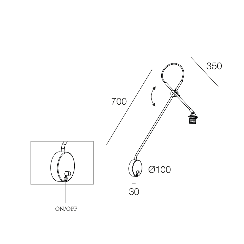 MISS PR Apparecchio per installazione a parete composto da braccio snodato regolabile con portalampada, su basetta provvista di nterruttore. Combinabile con paralume in velluto o in tessuto, in diverse finiture.