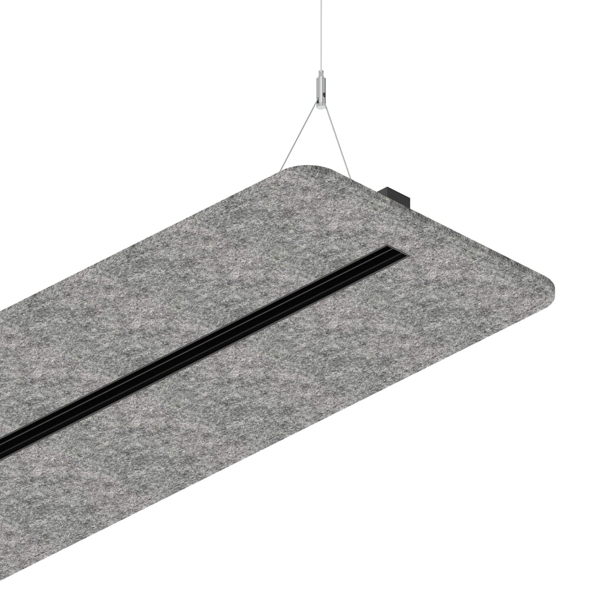 CAOS B: Apparecchio LED biemissione per installazione a sospensione, provvisto di pannello fonoassorbente in feltro PET riciclato con bordatura estetica in filato. Pannello disponibile in quattro finiture materiche: Carbone, Comfort Grey e Lime con bordatura grigia, Sabbia con bordatura ocra. Colorazioni differenti disponibili su richiesta. Telaio in acciaio verniciato a polvere e profilo in lega di alluminio nera predisposto per l?alloggiamento dei moduli elettrificati on-off o DALI/PUSH, e dei moduli luminosi: moduli LED con diffusore opale (diretti e indiretti) - moduli LED micro ottiche - moduli spot LED.
