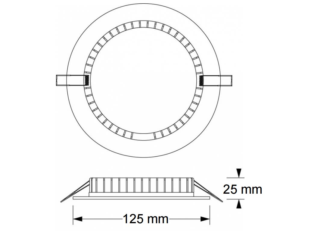 Apparecchio circolare LED 125mm completo di molle in acciaio per il fissaggio. Alimentatore elettronico incluso. Per installazione ad incasso in controsoffitto. Cornice e corpo dissipante in lega di alluminio pressofuso verniciato a polvere di colore bianco. Schermo diffusore in policarbonato opale. Molle per il fissaggio a controsoffitto (spessori fino a 15 mm) in acciaio armonico. Potenza: 9W. Colore della temperatura: 4000K. Colore: Bianco.