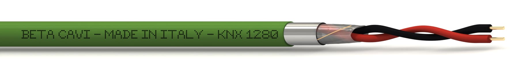 DOMOTICA KNX 2280 C NH Cavo di comunicazione certificato per sistemi domotici KNX. Cavo idoneo alla posa in coesistenza con cavi energia 230V 400V. Realizzato con conduttori in rame, guaina esterna in Duraflam LSZH, idoneo ad una posa interna ed esterna. Euroclasse Cca s1b d1 a1 Formazione: 2x2x0,80 + T + S Imballo: matassa in termoretraibile da 200m