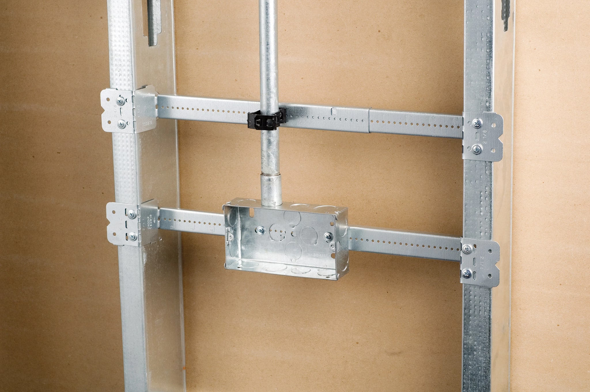 La staffa telescopica per avvitatore per scatola accelera il fissaggio preciso della scatola o del conduit tra montanti. Può fissare più scatole o condotti. Regolabile 15 3/4" -25" (400 mm - 635mm) per spaziatura dei montanti non standard.