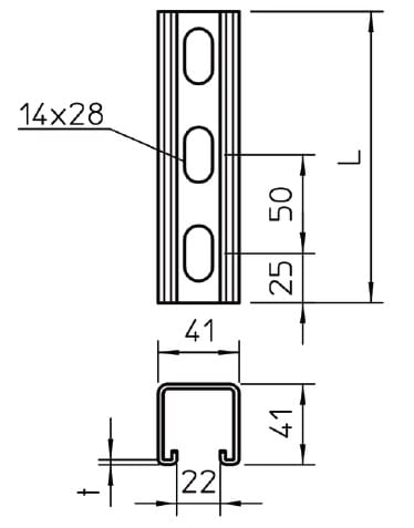 Profilati forato, largh. asola 22 mm 3000x41x41, St, FT