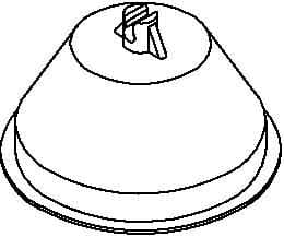 In cemento con rivestimento in plastica. Per tondo Ø 8 ÷ 10 mm. Dimensioni: base Ø 140 mm, altezza 100 mm.