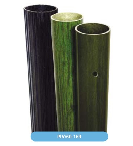 Pali per illuminazione Serie PLV/60-169. Resina poliestere rinforzata con fibra di vetro (Vetroresina) di qualsiasi colore, colori standard Grigio o Nero. La palina per illuminazione, di forma cilindrica è costituita da vetroresina e viene realizzata mediante la tecnica della poltrusione. Le caratteristiche dei materiali utilizzati, la moderna tecnologia di produzione e la sua forma, gli conferiscono infatti elevate prestazioni meccaniche, elevato isolamento elettrico, elevata resistenza alla corrosione ed un ottimo impatto ambientale. Le paline sono a marchio CE, sono disponibili di qualsiasi altezza, colore, rigate. Altezza (H)(mm): 1000. Diametro (D) (mm): 60. Interramento(mm): 320.