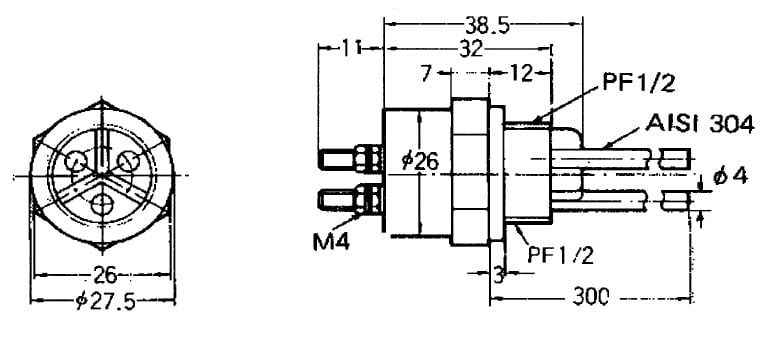 Portaelettrodi per regolatore di livello conduttivo con 3 elettrodi in AISI 304, l = 1 m