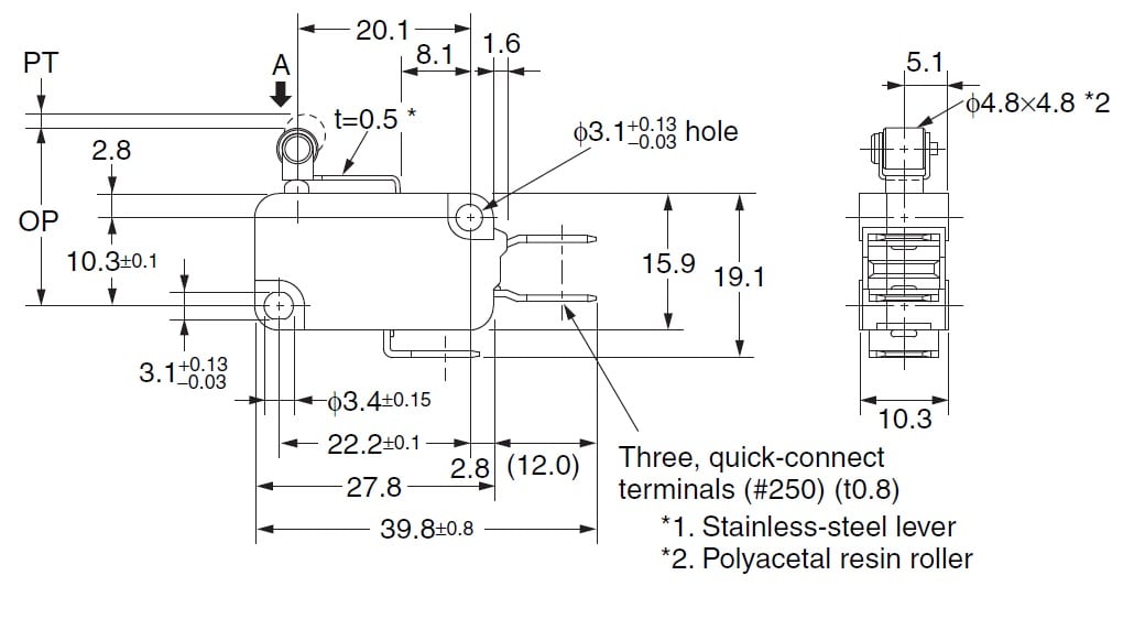 OMRON - OMRV1651C5R-1094510 MICRO-1DT16ALEVACORTAROTFS200GFASTON6.35