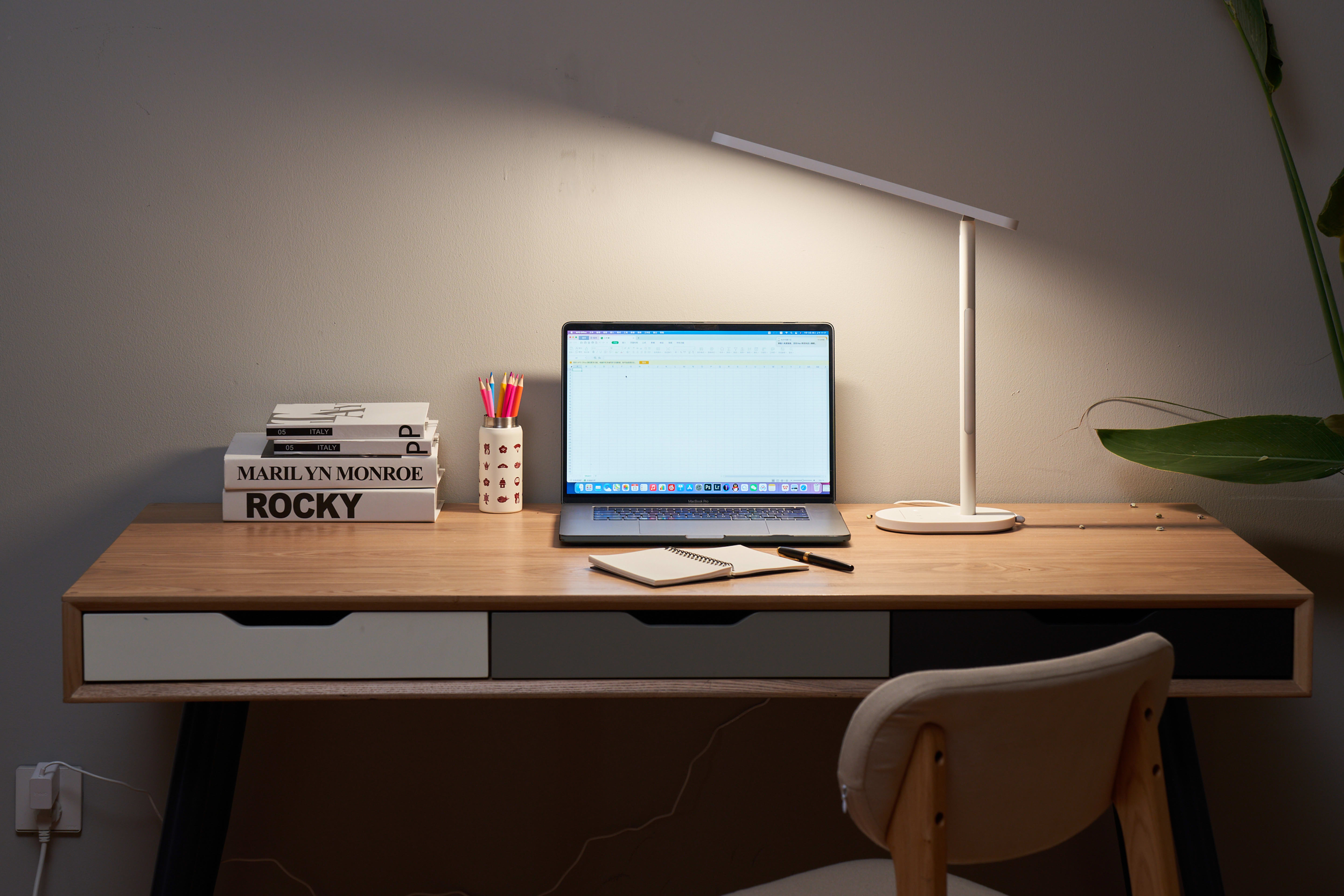 Lampada da scrivania dal design moderno con luce confortevole. Comando a sfioramento per la regolazione della luminosita e il cambio di CCT. Lente professionale a nido d'ape antiriflesso . Illuminazione indiretta per un maggiore comfort . Varie scene/caratteristiche per una maggiore facilita d'uso.