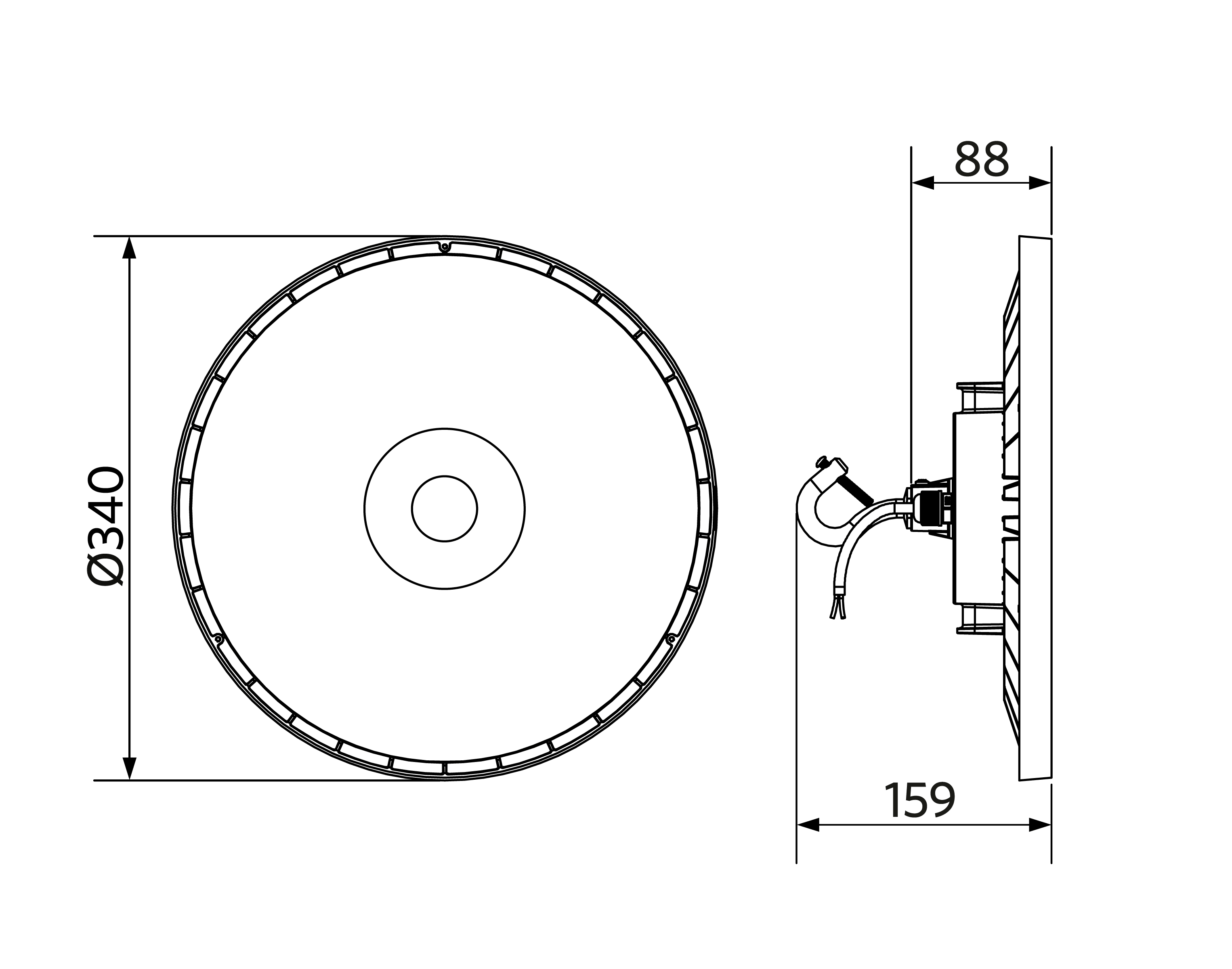 Soluzione ideale per soffitti elevati. Design slim ed elegante. Riflettori, staffa e connettore IP68 disponibili come accessorio.