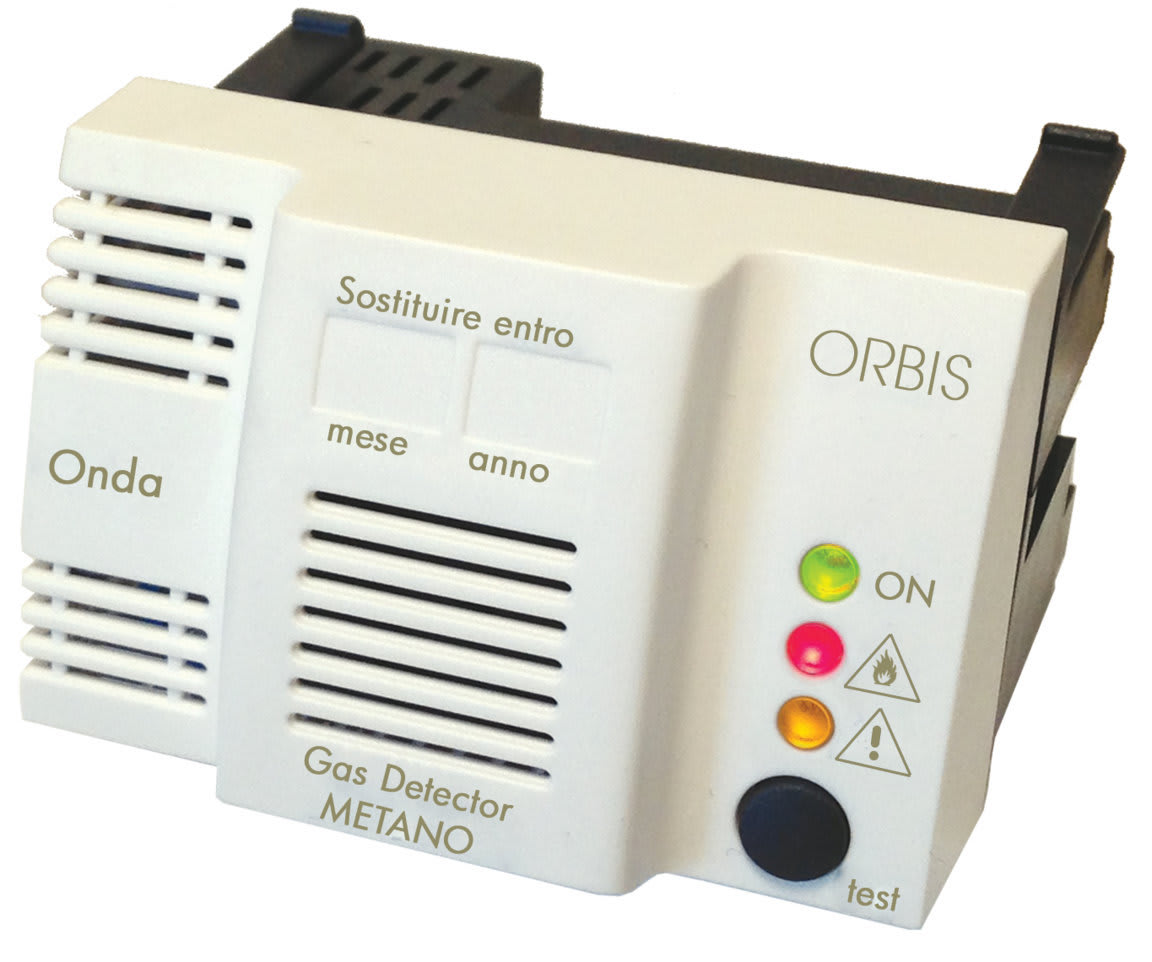 ONDA METANO. Segnalazione ottica ed acustica delle eventuali perdite di gas. Il relé in uscita può essere collegato ad una elettrovalvola normalmente aperta “NA” o normalmente chiusa “NC” e può interrompere il flusso di Gas una volta rilevata una perdita. Sul frontale ci sono tre Led di segnalazione, il verde indica che è inserita l’alimentazione, il giallo indica che il sensore gas è guasto, e il led rosso indica che la concentrazione di gas misurata nell’aria è superiore alla soglia d’ allarme. Il rivelatore segnala automaticamente la scadenza del sensore. Disponibile in due versioni per gas metano e GPL. Pulsante di reset/test per tacitazione allarme. Inclusi nella confezione due frontalini colore bianco e antracite intercambiabili. Adattabile alle principali serie civili
