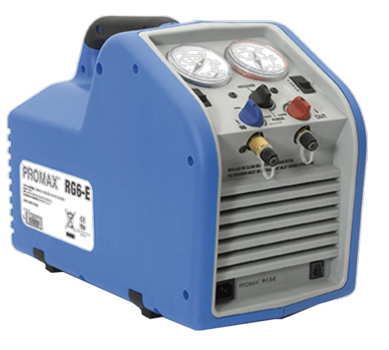 Rg6-E Stazione di recupero da 1Hp. Alimentazione 230 V AC. Assorbimento 6 A - 750 W. Compressore a secco, doppio pistone 1 HP. Tassi di recupero: vapore 0,25 Kg/min., liquido 3,50 Kg/mi. Pressostati di alta e bassa pressione Protezione compressore anomalie e alta pressione 38,5 bar. Temperatura ambiente da 0°C a 40°C. Peso 14,5 Kg Dimensioni: 432 x 305 x 228. Le stazioni vengono fornite con filtro d’ingresso, raccordo di ingresso con rubinetto, raccordo di uscita con rubinetto, cavo di alimentazione