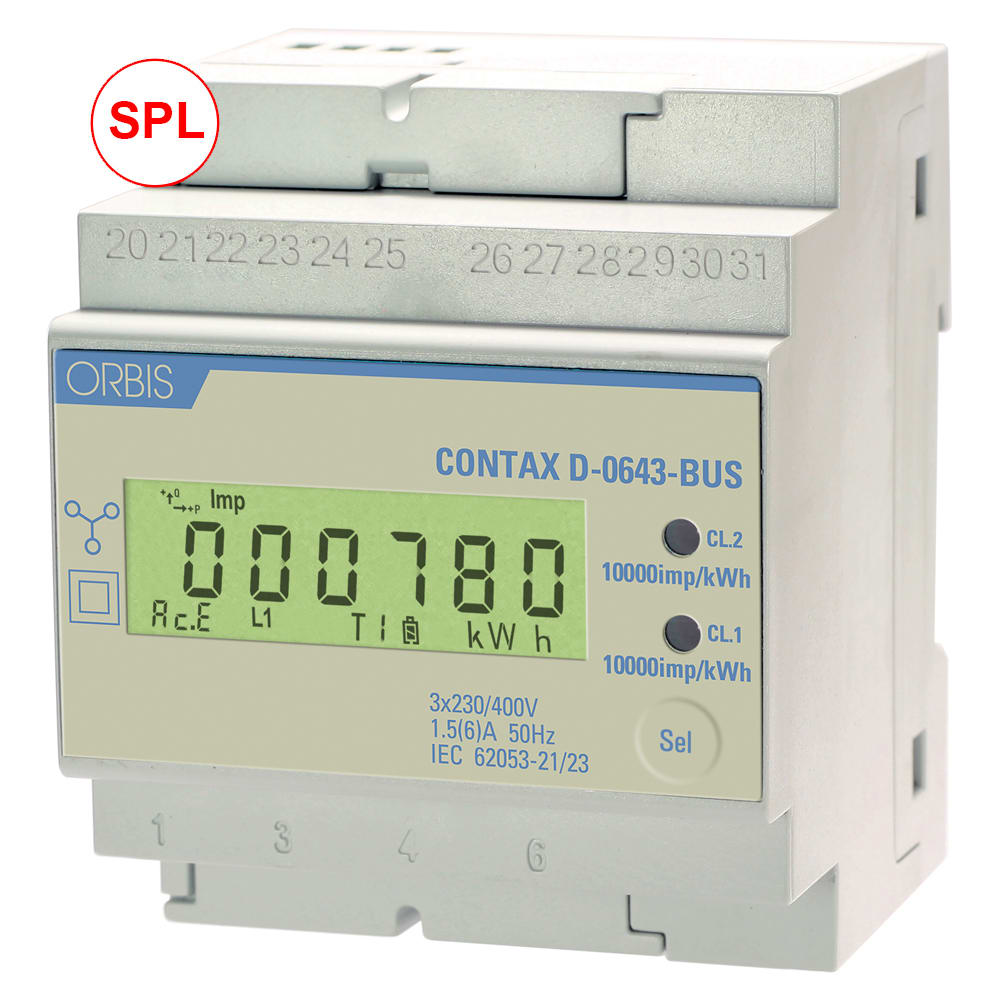 Contatore digitale bidirezionale che permette di controllare il consumo d'energia attiva e reattiva e che viene programmato per la configurazione SPL come contatore per le colonnine di ricarica VARIS. - Possibilita di visualizzare le principali grandezze elettriche istantanee: Tensione, Corrente, Potenza attiva e reattiva, Frequenza e Fattore di potenza (configurabile tramite software via Modbus) - Indicazione led consumo energia - Visualizzazione dell'Energia per fasci orarie (configurabili tramite software via Modbus) - Registro valori Massimi (tramite software via Modbus) Tensione, Corrente, Energia attiva e Reattiva - Lo strumento dispone di un'uscita seriale RS485 isolata con sistema di comunicazione su protocollo MODBUS - Il display dei contatori visualizza in sequenza, circa ogni 5 secondi, la data, l'ora corrente e il valore di energia attiva prelevata. Tramite il Software CONTAX D-BUS e possibile configurare, via MODBUS, il contatore in modo che possa visualizzare i valori di Energia attiva e Reattiva prelevata o immessa in rete (come valori totali o suddivisi per fasci orarie), Tensione, Corrente, Potenza, Frequenza, Fattore di potenza - Sempre tramite il Software CONTAX D-BUS e possibile leggere a PC tutte le grandezze misuratesia come valori istantanei che registrati nel tempo, la curva di carico e la registrazione delle mancanze di rete CARATTERISTICHE TECNICHE - Predisposiziione per configurazione SPL per le colonnine VIARIS - Tensione nominale: 3x230 (400) V AC - Range alimentazione: Da -20% a +15% della tensione nominale - Frequenza nominale: 50 Hz - Intensita Ib (Imax): 5 (6)A - Corrente d'avviamento: 15 mA - Autoconsumo: Circ. voltmetrico 2,5 VA e Circ. amperometrico 2,5 VA - Classe di precisione:1 (attiva) - 2 (reattiva) - Numeratore: 6 digit (non azzerabile) - Uscita impulsi: Interfaccia: accoppiatore ottico durata impulsi ;80 ms, tensione 5?40 V DC, valori limite 50 V DC 30 mA - Lampeggio LED: 0,1 Wh e 0,1 Varh - Memoria back-up: EEPROM - Riserva di carica: Pila al litio: 10 anni a +20 ?C - Temperatura di funzionamento: Da -25 ?C a +55 ?C - Grado di protezione: IP 20 come da EN 60529 - Installazione: Barra DIN 35 mm secondo EN 60715