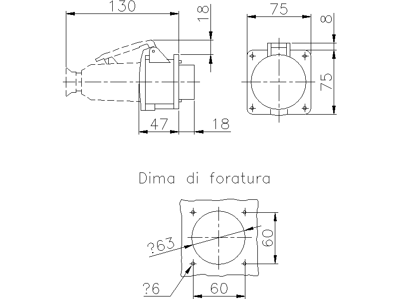 Dimensione della flangia verticale: