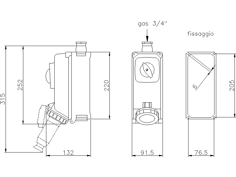 Presa da parete con interruttore di blocco e base portafusibili in contenitore modulare in lega di alluminio. IP 67 >>IK10. Fusibili tipo NDZ (E16) non in dotazione. Passaggio superiore finestra tipo F0. Manopola lucchettabile. Date le elevate doti di compattezza, è particolarmente indicata per installazioni in spazi ridotti (es. su pilastri, a bordo macchina).