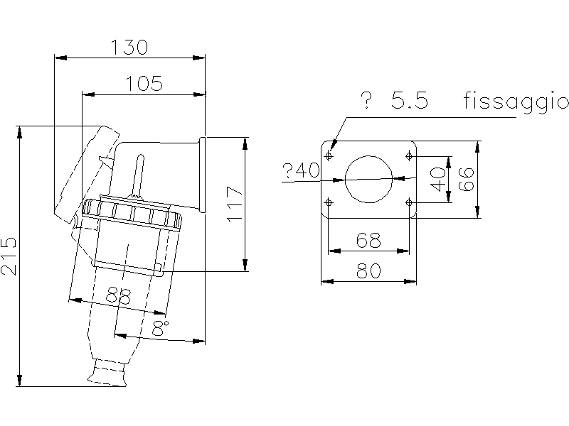 Spina fissa da parete a 90° stagna ad alte prestazioni bassa tensione. Parete superiore liscia forabile per l'ingresso cavi. Corpo spina e custodia con elevati spessori (> IK08) ed autoestinguenti GWT:850°C - UL94:V2. Adatta sia per installazioni a parete che a bordo macchina.