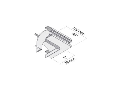 Elemento di collegamento per due linee di profili componibili con angolo 1 di giunzione piano esterno di 90° per installazione incassta a scomparsa parete-parete / soffitto-soffitto misure esterne 110x110mm. Bianco opaco.