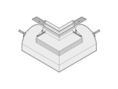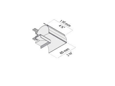 Elemento di collegamento per due linee di profili componibili con angolo 2 di giunzione piano esterno di 90° per installazione incassta a scomparsa parete-parete / soffitto-soffitto misure esterne 110x110mm. Bianco opaco.