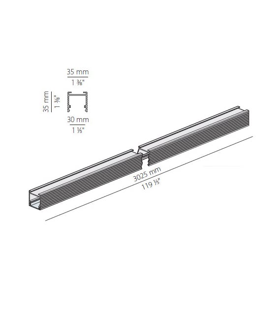 Profilo componibile per installazione a sospensione o a soffitto in ambienti interni, con emissione diretta. Struttura in alluminio estruso con verniciatura a polvere in colore bianco RAL 9003. Schermo diffusore in policarbonato estruso con finitura opalina. Moduli luminosi e alimentatore da ordinare separatamente.Potenza assorbita dal sistema max 46W/m Sorgente luminosa LED. Distribuzione luminosa fascio anti-abbagliamento. Apertura fascio 51° / 82°. Alimentazione 24V DC. Driver remoto non incluso. UGR< 19. Peso 0,6800Kg. Grado di protezione IP20. 3000K 8,5W 24V. 3025 mm