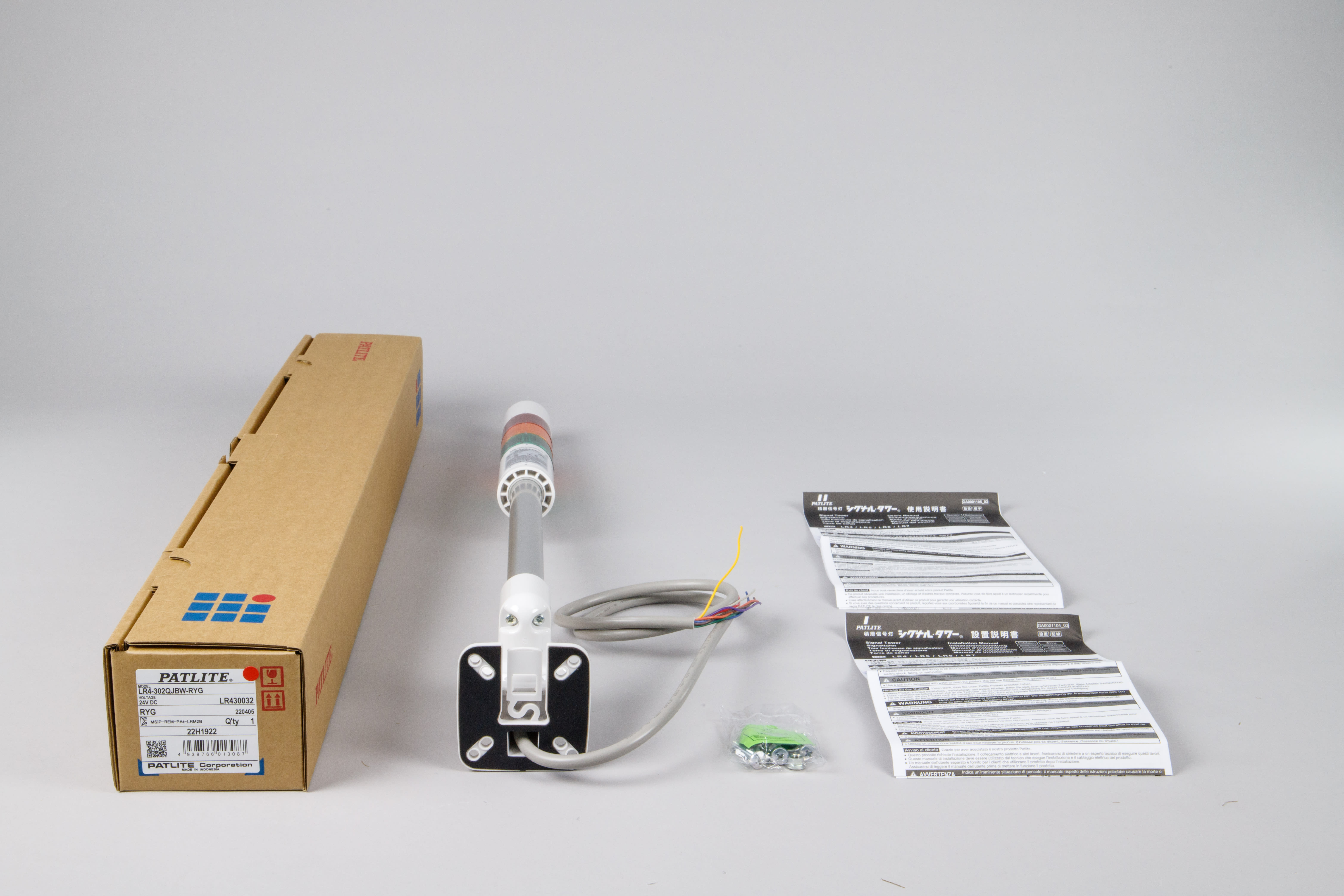 LR signal towers provide illuminated and optional audible status indication for machines and systems.Delivering superior visibility and sound for unambiguous indication, robust construction for harsh, wet environments, and a modular system for easy customizations, the LR Series is equipped to solve the most challenging applications. Modular design ¿Twist and Lock¿, to easily customize and field configure LED units and sound modules. Smooth surface design and a rugged body construction for performance in harsh environments, carrying an IP65 protection rating. Unique lens and light module construction, the LR series provides brilliant, even light for visibility at further distances. Completely enclosed sound module, maintains substantial water and dust protection while producing loud, omni-directional sound. Features and Conformity Standards, 40mm diameter, 24VDC, red/amber/green (colored lens LED modules), continuous/flashing/buzzer, Maximum 85dB, Off-white, Pole with folding bracket, Cabtyre cable, IP65(IEC 60529) / NEMA TYPE 4X, 13, Conforms to the CE /UKCA requirements, UL Recognized Components (File No. E215660), UL 508, CSA-C22.2 No.14, FCC Part 15 Subpart B Class A, RoHS Directive (EN IEC 63000), EMC Directive (EN 61000-6-4, EN 61000-6-2), Low-voltage Directive (IEC/EN 60947-5-1, EN62471), KC (KN 61000-6-4, KN 61000-6-2)