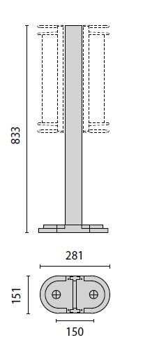 Palo 45 H800 costituito da: Palo in alluminio estruso verniciato predisposto per alloggiare uno o due apparecchi. Base di fissaggio a terra in alluminio pressofuso verniciato. Scatola di derivazione in alluminio pressofuso con morsetto a 4 poli 4 mm2 predisposta per collegamento in cascata. Colore: Antracite.