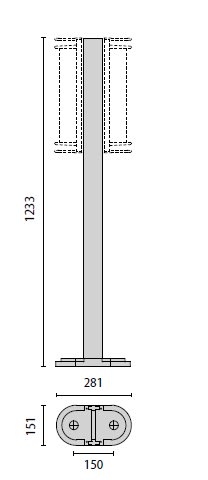 Palo 45 H1200 costituito da: Palo in alluminio estruso verniciato predisposto per alloggiare uno o due apparecchi. Base di fissaggio a terra in alluminio pressofuso verniciato. Scatola di derivazione in alluminio pressofuso con morsetto a 4 poli 4 mm2 predisposta per collegamento in cascata. Colore: Grigio.