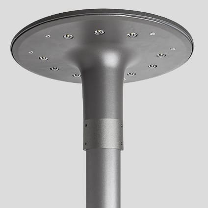 Apparecchio su palo per esterni per illuminazione generale, costituito da: Corpo in alluminio pressofuso verniciato in polvere poliestere. Attacco a palo in alluminio pressofuso verniciato polveri poliestere per pali Ø 60 - Ø 76 mm. Guarnizione in silicone antinvecchiamento. Pressacavo antistrappo M25x1,5 per cavi Ø 9 - Ø 14 mm. Connessione elettrica esterna tramite connettore stagno QUICK, completo di cavo. Le versioni LED sono fornite complete di alimentatore 220/240 V 50/60 Hz. Versione dimmerabile 1-10 V. Ogni LED è accoppiato con un dispositivo elettronico di di sicurezza (NUD) in grado di by-passarlo in caso di guasto. Viteria esterna in acciaio inox. Sistema "SECURE LIGHT DISTRIBUTION" che garantisce l'uniformità della distribuzione luminosa anchein caso di inefficienza di qualche. LED. Processo di verniciatura in 13 differenti passaggi in polveri di poliestere ad alta resistenza contro raggi UV ed agenti atmosferici. Classe II. Attacco: LED. Watt: N. 6 LED - 11 W. Colore: ANTRACITE METALLIZZ. OPACO. Classe isolamento: II. KELVIN: 4000. IK: IK10 20J xx9. Ottica: OTTICA CIRCOLARE EXTRA DIFFONDENTE. Flusso nominale: 1122 lm. Flusso effettivo: 703 lm. Lifetime: 60000 h. L: 80.