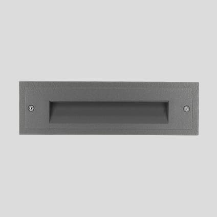 INSERT+ 1. Apparecchio per interni ed esterni per incasso in pareti piene per illuminazione generale, costituito da: Corpo in alluminio pressofuso, verniciato. Diffusore in vetro piano satinato internamente. Guarnizione in EPDM. Connessione elettrica esterna tramite connettore stagno QUICK, completo di cavo. Connettore elettrico per cavi Ø 7 - Ø 12 mm . Scheda LED multichip 3000 K . Viti di chiusura in acciaio inox. L'apparecchio necessita di controcassa da ordinarsi separatamente. La controcassa è dotata di un coperchio estraibile con inserite all’interno due bolle di livello per facilitare l’installazione della controcassa. Processo di verniciatura in 13 differenti passaggi in polveri di poliestere ad alta resistenza contro raggi UV ed agenti atmosferici. Attacco: LED. Watt: N. 25 LED - 7 W. Colore: ANTRACITE METALLIZZ. OPACO. Classe isolamento: I. KELVIN: 4000. IK: IK07 2J xx5. COSf = 0,9. Flusso nominale: 758 lm. Flusso effettivo: 224 lm. Lifetime: 60000 h. L: 80.