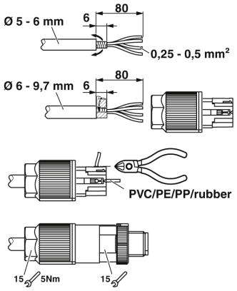 Sezione conduttore collegabile a filo sottile senza bussola d'estremità: