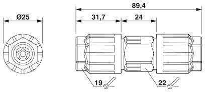 Innovativo e rapido: connessione rapida QUICKON per un risparmio di tempo fino all'80 % durante la connessione in loco. Pratico: confezionamento semplice e rapido senza utensili speciali. Estremamente robusto: custodia con gradi di protezione IP68/IP69K e IK07 per un ampio range di impiego. Connessione sicura grazie alla polarizzazione contro le inserzioni errate e la protezione antinfortunistica a norma DIN EN 0105. Semplice e sicuro: il connettore per linee consente di riparare o prolungare rapidamentele linee, in combinazione con il connettore anche come collegamento per giunti.