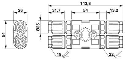 Innovativo e rapido: connessione rapida QUICKON per un risparmio di tempo fino all'80 % durante la connessione in loco. Pratico: confezionamento semplice e rapido senza utensili speciali. Estremamente robusto: custodia con gradi di protezione IP68/IP69K e IK07 per un ampio range di impiego. Connessione sicura grazie alla polarizzazione contro le inserzioni errate e la protezione antinfortunistica a norma DIN EN 0105. Flessibile e compatto: grazie al cablaggio interno delle connessioni, i distributori a He a T possono essere utilizzati per la diramazione di linee principali oppure come distributori a stella.