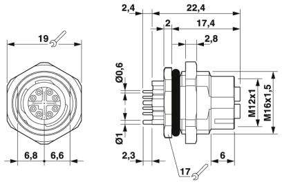 Semplice montaggio su circuito stampato: connettori monocomponenti per la saldatura a onde. Tutti i pinning e le codifiche standard per la trasmissione di segnali, dati e potenze con progettazione standardizzata. Per un'elevata sicurezza di trasmissione:connessione schermata opzionale sulla custodia tramite contatto schermato.