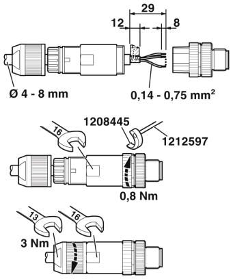 Sezione conduttore collegabile a filo sottile senza bussola d'estremità: