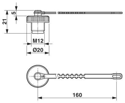 Tappo M12 con nastro di fissaggio per cavi sensore, per connettori femmina M12 inutilizzati