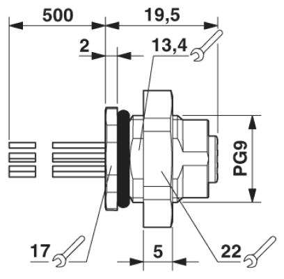 Preconfezionato con cavetti per un'installazione immediata. Sono disponibili lunghezze cavetti e confezionamenti specifici per il cliente. Saldato lato cavetto per un'ottimale ermeticità. Pinning standard e codifica per la trasmissione di segnali con progettazione standardizzata. Per un'elevata sicurezza di trasmissione: connessione schermata sulla custodia con dado EMC opzionale.