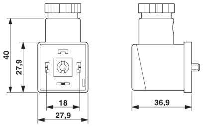 Connettore per valvole, 3-poli, Connettore per valvole A, con 1 LED, collegato con Varistore e raddrizzatore, Connessione a vite, connessione a vite per cavo M16, diametro esterno cavo 6 mm ... 8 mm