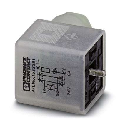 Connettore per valvole, 3-poli, Connettore per valvole A, con 1 LED, collegato con Varistore e raddrizzatore, Connessione a vite, connessione a vite per cavo Pg9, diametro esterno cavo 6 mm ... 8 mm