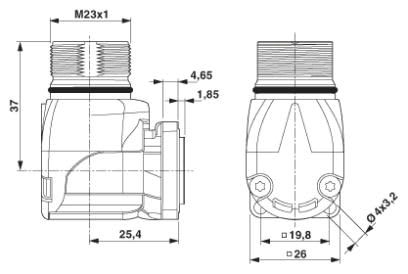 Connettore per apparecchi anteriore, angolato, fisso, Bloccaggio a vite, M23, numero poli: 16, tipo contatti: femmina, Attacco a crimpare, O-ring assiale, 4x Ø 3,2, schermata: sì, misura flangia: 26 mm x 26 mm