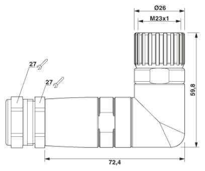 Connettore femmina M23, 19 poli, angolato, schermato, liberamente configurabile, con connessione a saldare, per diametro esterno cavo 9,5 mm ... 14,5 mm