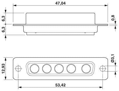 Inserto portacontatti D-SUB, grandezza linguetta 3, alloggiamento per 5 contatti combinati, tipo contatto femmina, diritto, fissaggio mediante foro 3 mm, per telai da incasso e mobili VS-25-...