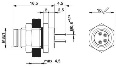 Semplice montaggio su circuito stampato: connettori monocomponenti per la saldatura a onde. Pinning standard e codifica per la trasmissione di segnali con progettazione standardizzata. Per un'elevata sicurezza di trasmissione: connessione schermata opzionale sulla custodia e bloccaggio sul circuito stampato.