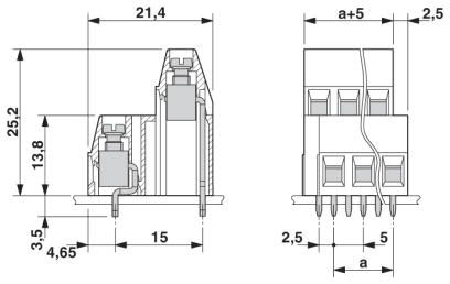 Angolo circuito stampato/collegamento del conduttore - 0°/180° (orizzontale)