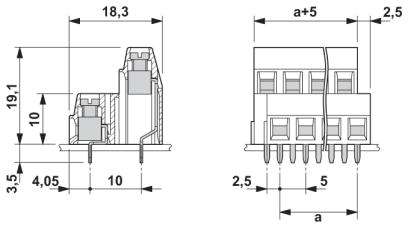 Angolo circuito stampato/collegamento del conduttore - 0°/180° (orizzontale)
