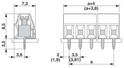 Angolo circuito stampato/collegamento del conduttore - 0°/180° (orizzontale)