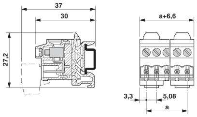 Blocco a innesto per il montaggio sulla guida di supporto NS 15. Combinabile con la linea MSTB 2,5.