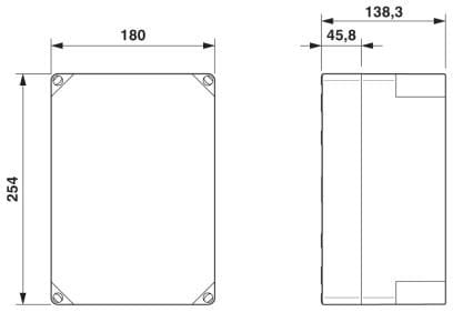 Scatola di comando per una struttura robusta dei sistemi radio per applicazioni industriali, IP66, 25 x 18 x 13 cm, materiale policarbonato, grigia, forata, incl. guida di supporto, spine e connessioni a vite, senza dispositivi