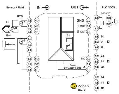 Fino a SIL 2 secondo EN 61508. Installazione in zona 2, tipo di protezione ammessa "n" (EN 60079-15).